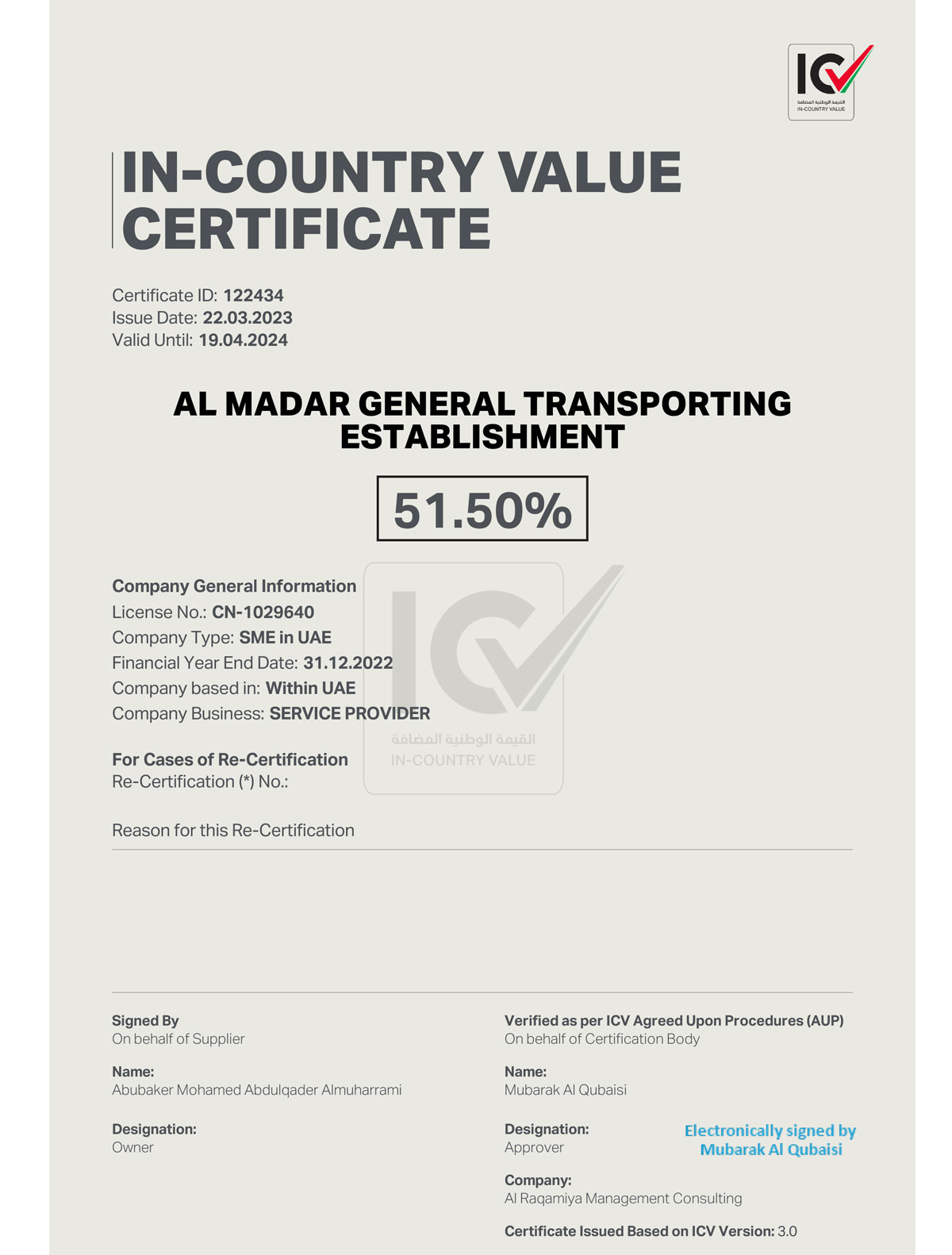 ICV Certificate